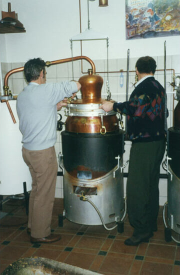 Avec l’acquisition de 2 alambics VD 15 et VD 85 provenant de l’Auberge du Mollendruz, les locaux des Epinettes 2 ont été transformés en distillerie, tout en maintenant une activité de ferblanterie-couverture.